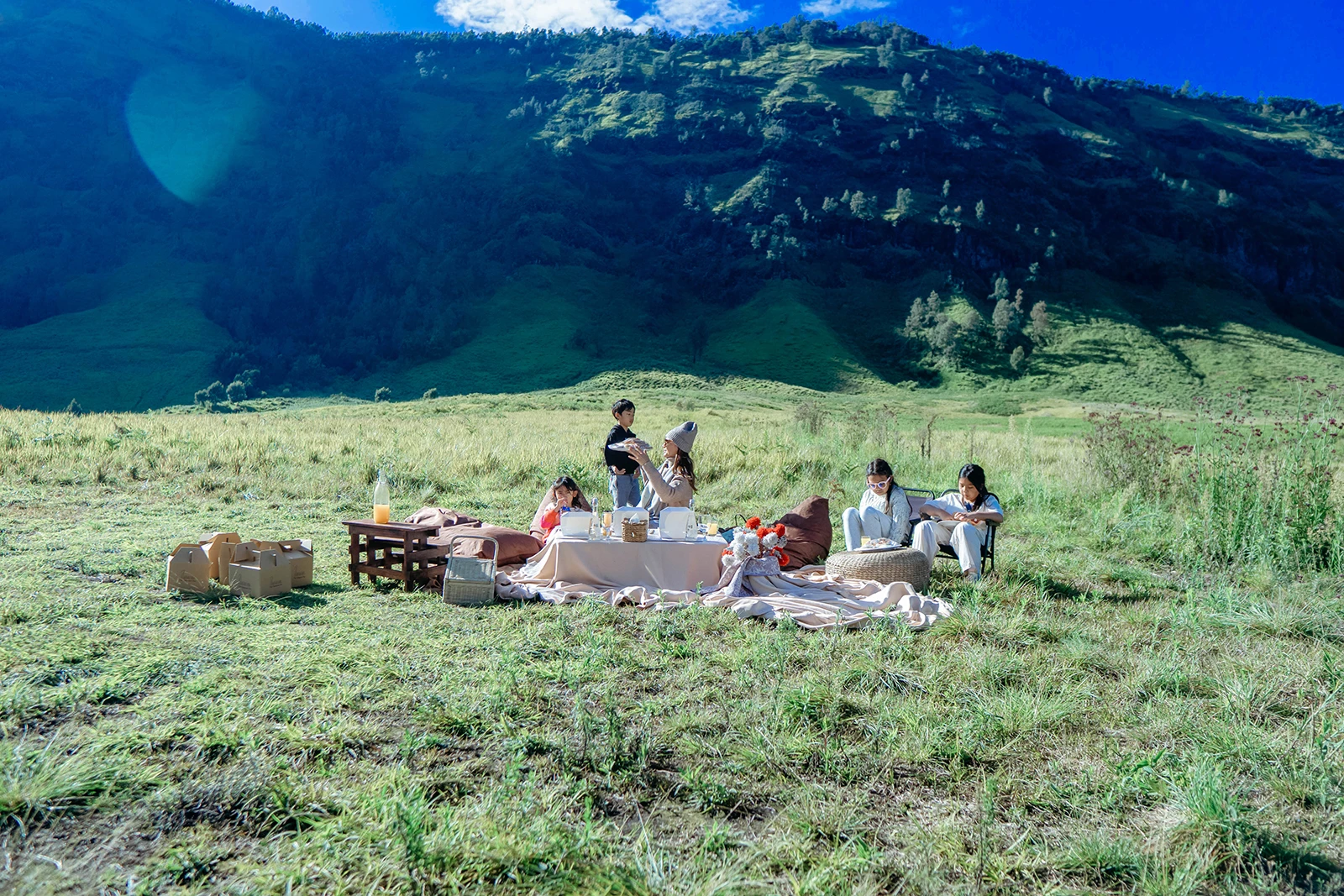 The Family Escape package at Plataran Bromo is designed to bring families into the landscape through shared activities. One of the highlights is the Tengger Caldera Wonder, where families explore the caldera and surrounding viewpoints together. Breakfast is served with Mount Bromo in view, turning the meal into part of the journey rather than a pause from it. Nearby, the Bromo Savana opens into wide grasslands where children can explore freely while parents take in the scenery at their own pace.