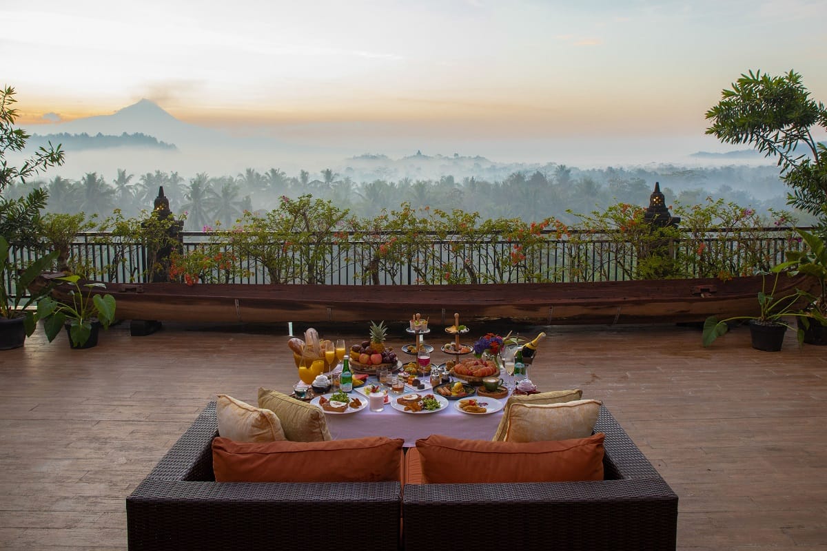 Sunrise Breakfast di Tiga Dari Rooftop Plataran Borobudur.