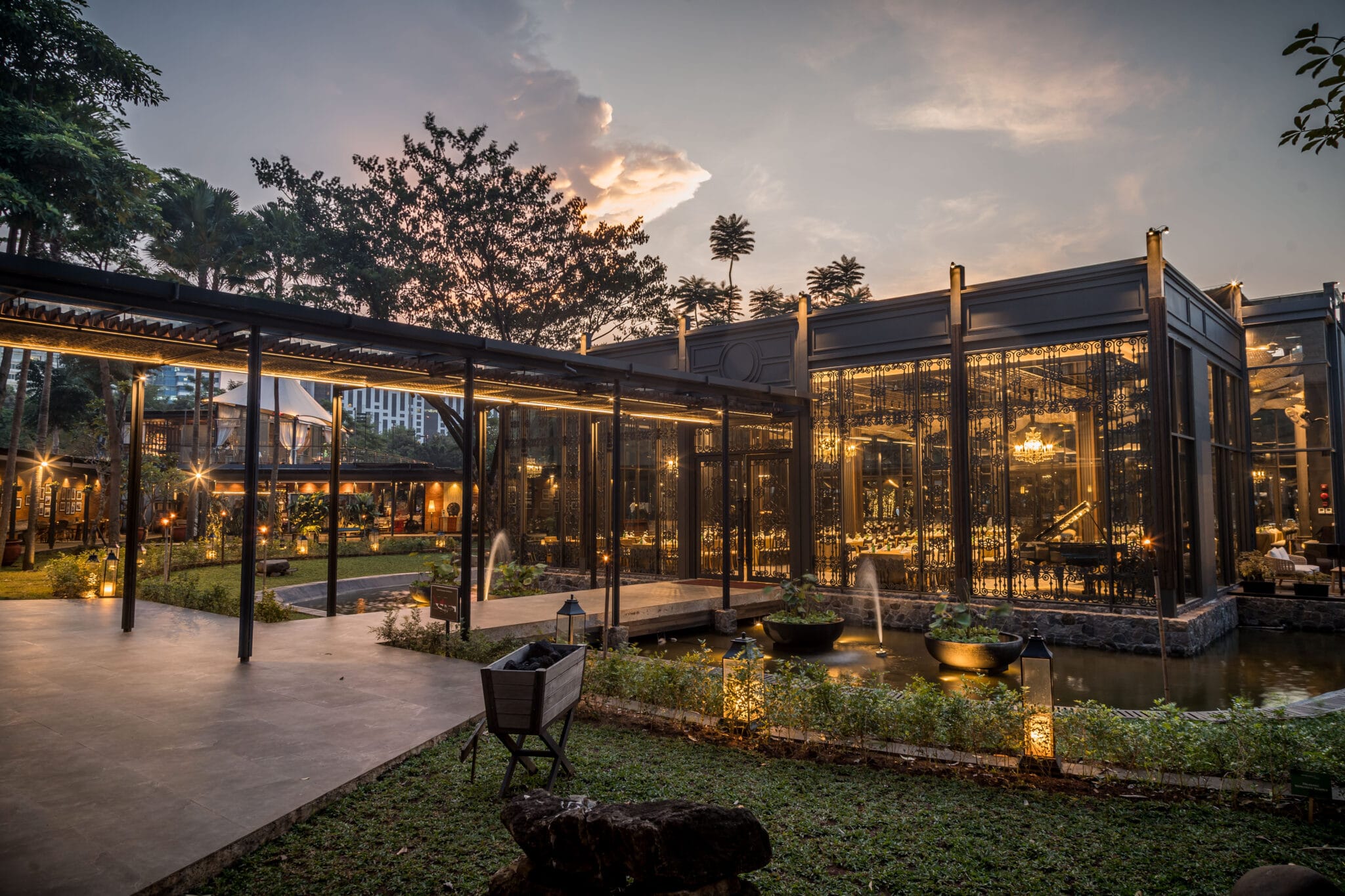 Comfortably ensconced inside the Gelora Bung Karno complex, Hutan Kota by Plataran is a city-forest enclave where landscaped paths meet the Sudirman skyline. Spread across 3.2 hectares of land with capacity for up to 2,000 guests, the site is divided into three main areas: Plataran Tiga Dari, the Melati Fountain Garden Glass House and Pidari Lounge with its rooftop. The project was conceived by Plataran, folding nature, culture and cuisine into one setting.